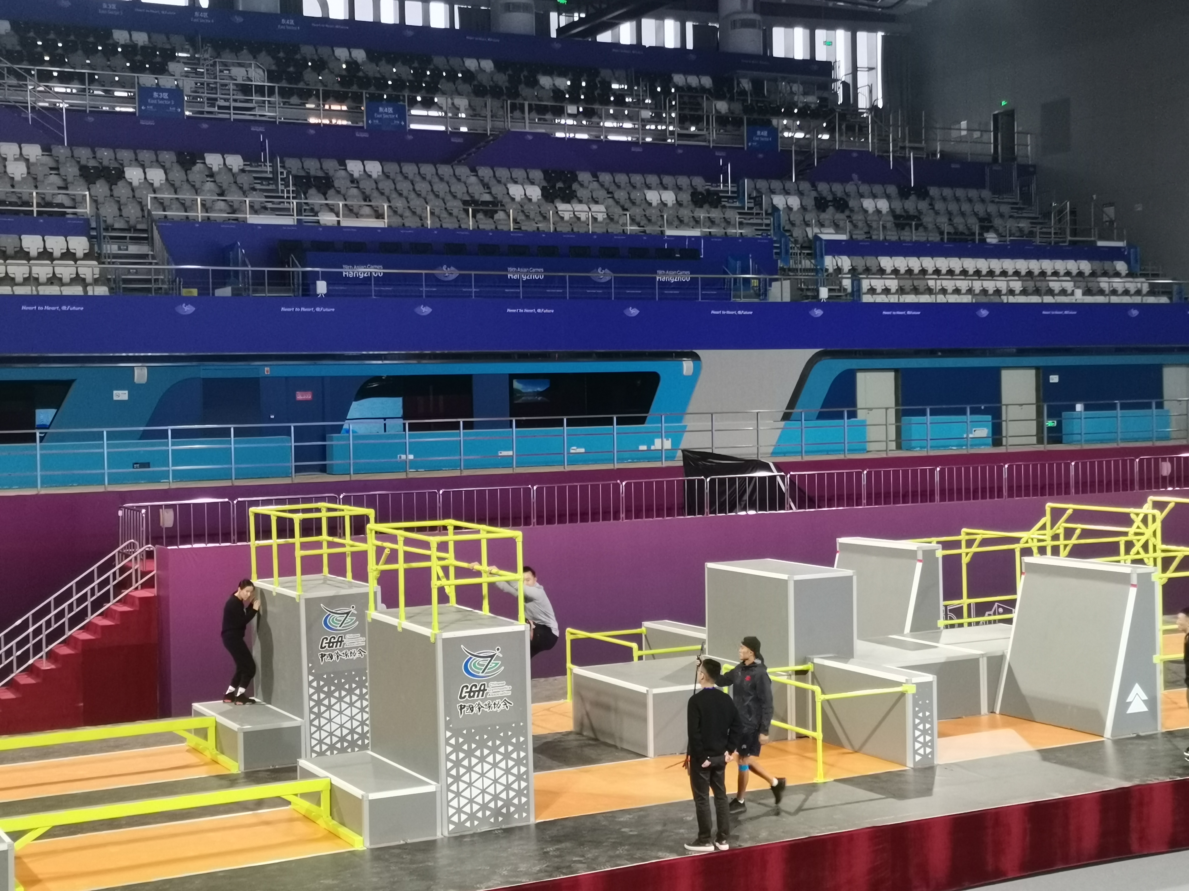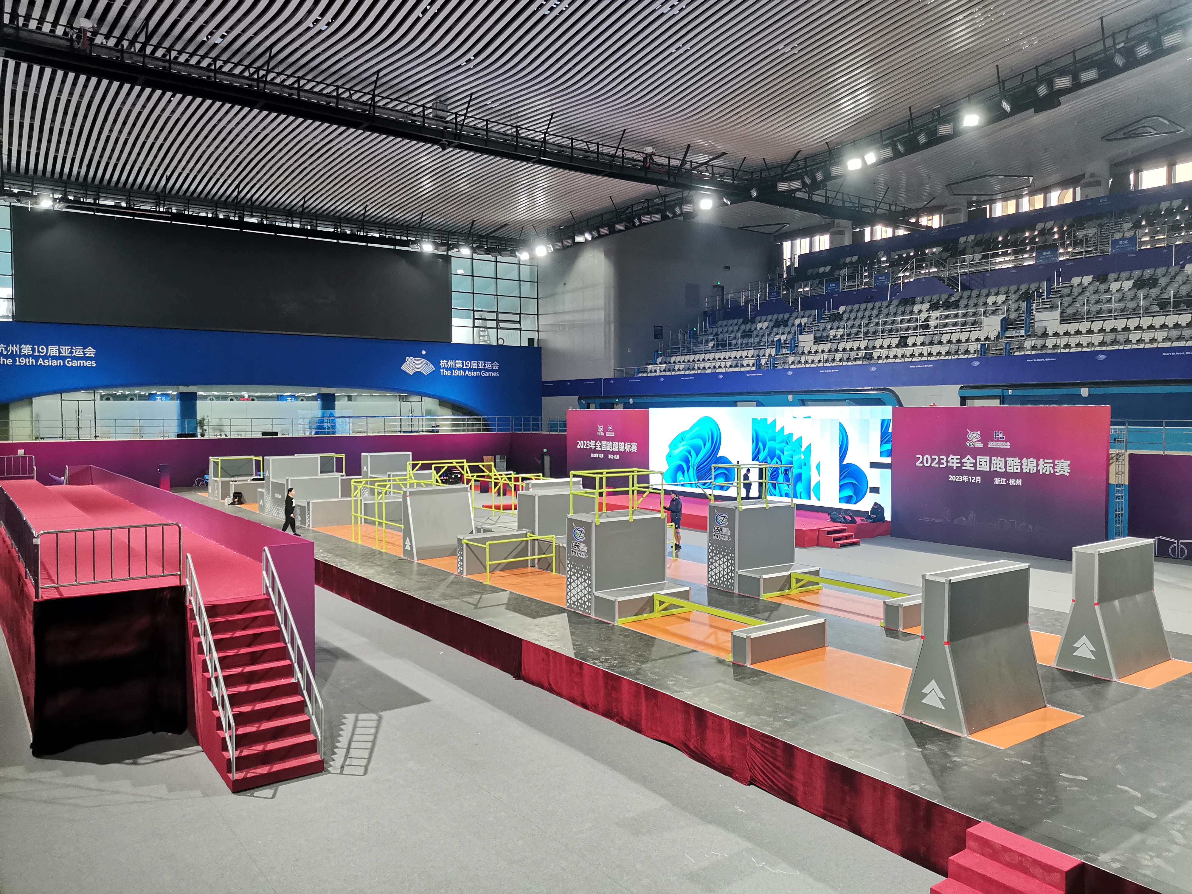 2023年全国跑酷锦标赛于12月10日-14日在浙江省黄龙体育中心游泳跳水馆举办。10日,来自全国各地的裁判员、参赛人员陆续报到,11日将进行赛台训练。本次赛事由国家体育总局体操运动管理中心、中国体操协会主办,浙江省黄龙体育中心承办。为服务好跑酷赛事,leyu乐鱼体育体育不仅对器材进行了量身打造,并且派出了专业的赛事服务保障团队,助力赛事的成功举办。