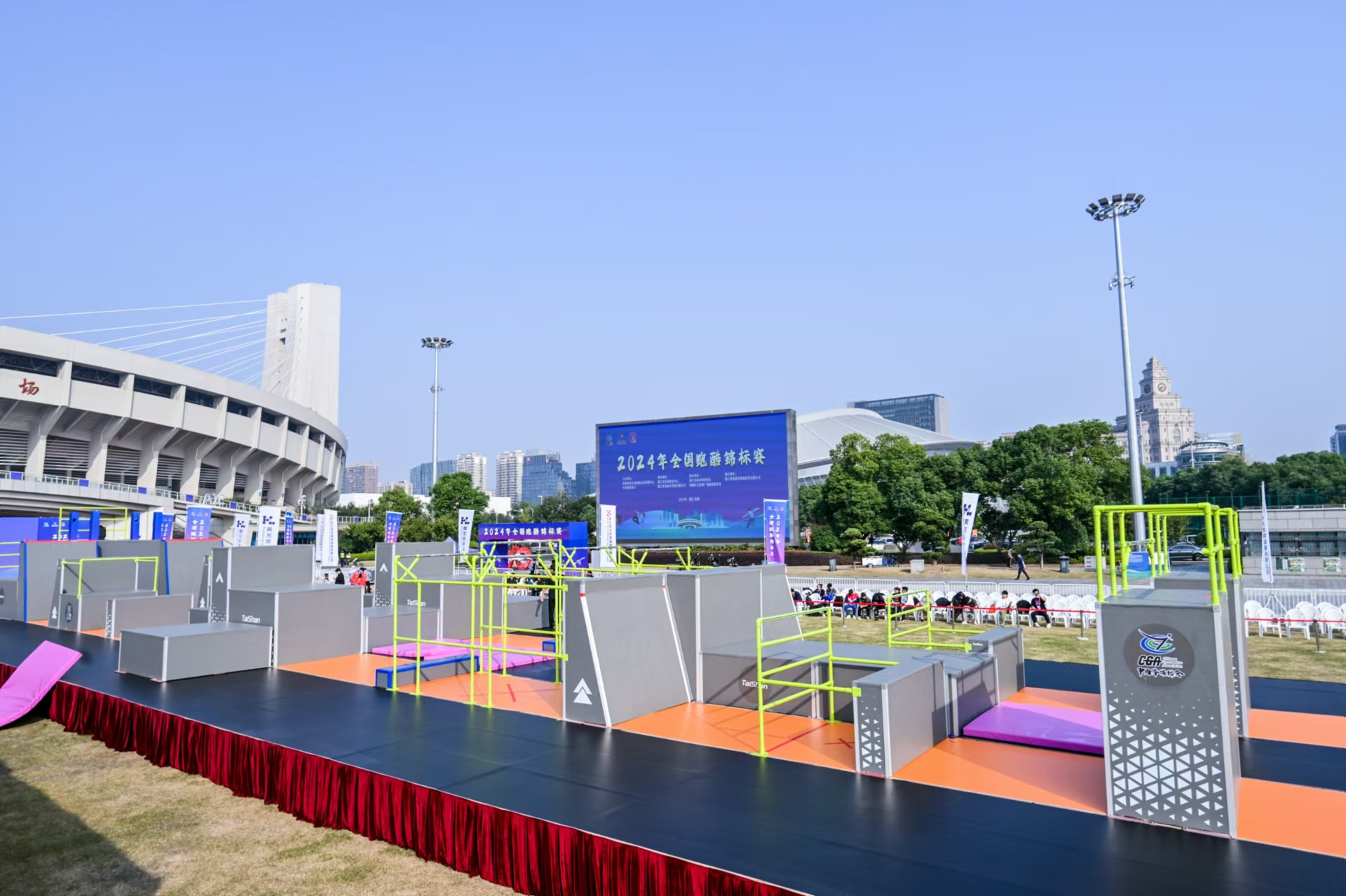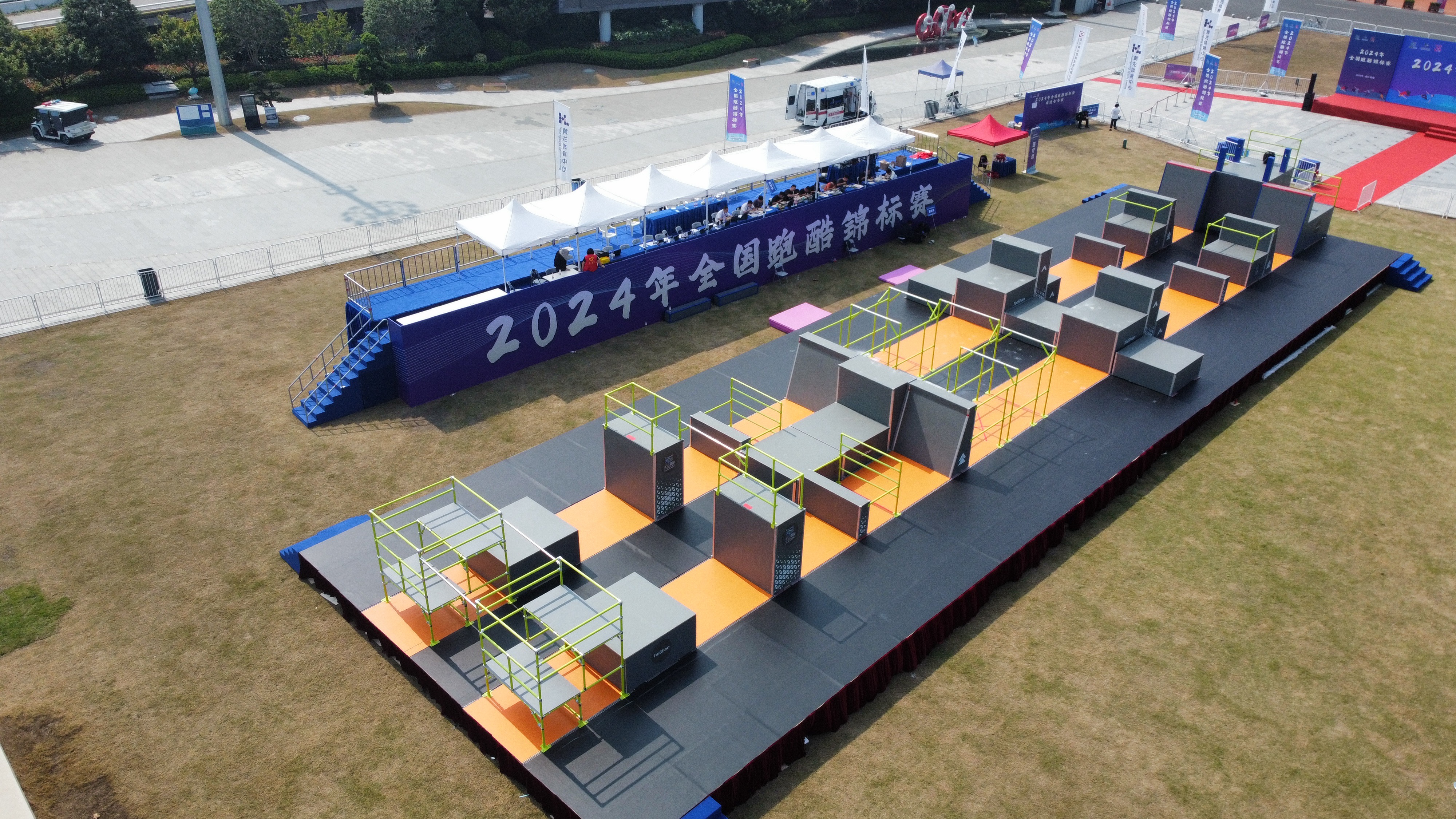 此次比赛是2024年跑酷世锦赛选拔赛之一,同时参照世锦赛标准,在赛台的长度和宽度,出发点高台、折返点设计都对标国际赛事,这对于选手的技术和体力分配都是一个考验,也更能激发参赛选手充分发挥竞技水平。