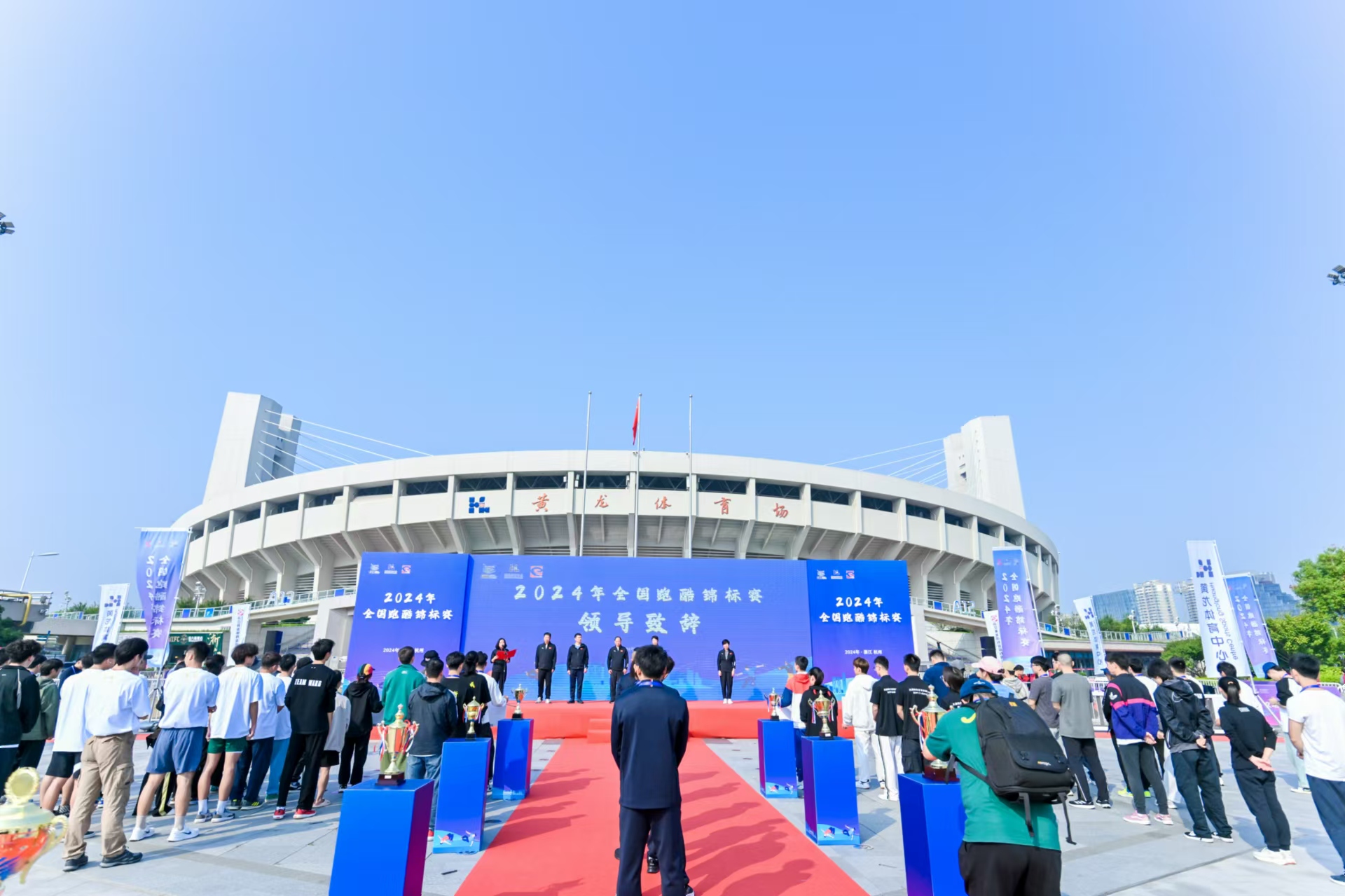 【概要描述】10月11日,2024全国跑酷锦标赛在杭州黄龙体育中心开幕,本次比赛是全国规模大、水平高、具有代表性的跑酷赛事,吸引了来自全国各地的近30个城市的近百名跑酷爱好者齐聚一堂。 赛事由国家体育总局体操运动管理中心、中国体操协会主办,浙江省黄龙体育中心、浙江黄龙体育发展有限公司承办。 国家体育总局体操运动管理中心事业发展部主任徐国敏,浙江省体育局体育竞赛处处长毛鹏飞,浙江省黄龙体育中心党委专职副书记