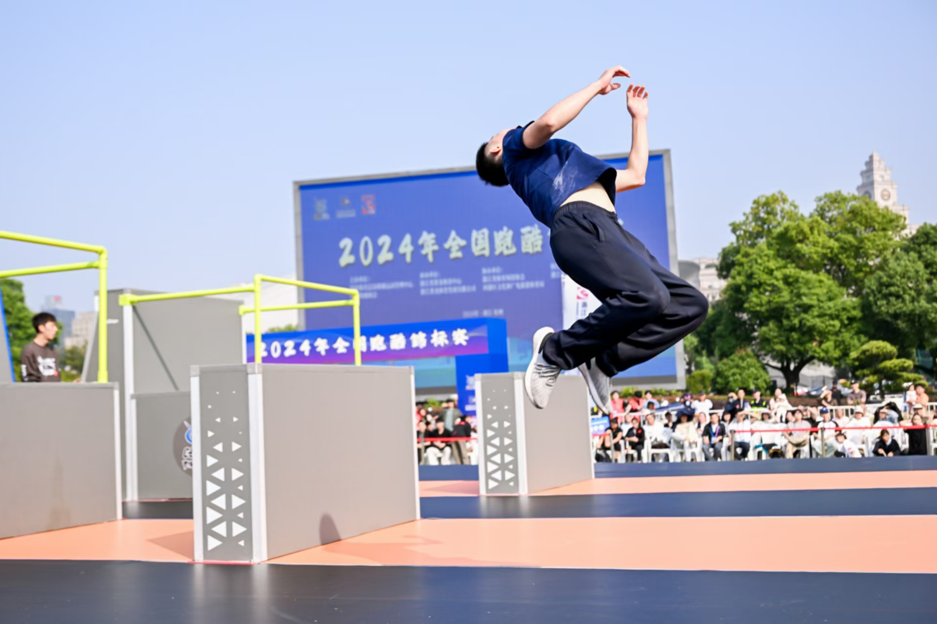腾空跳跃|leyu乐鱼体育体育助力2024全国跑酷锦标赛杭州黄龙开赛