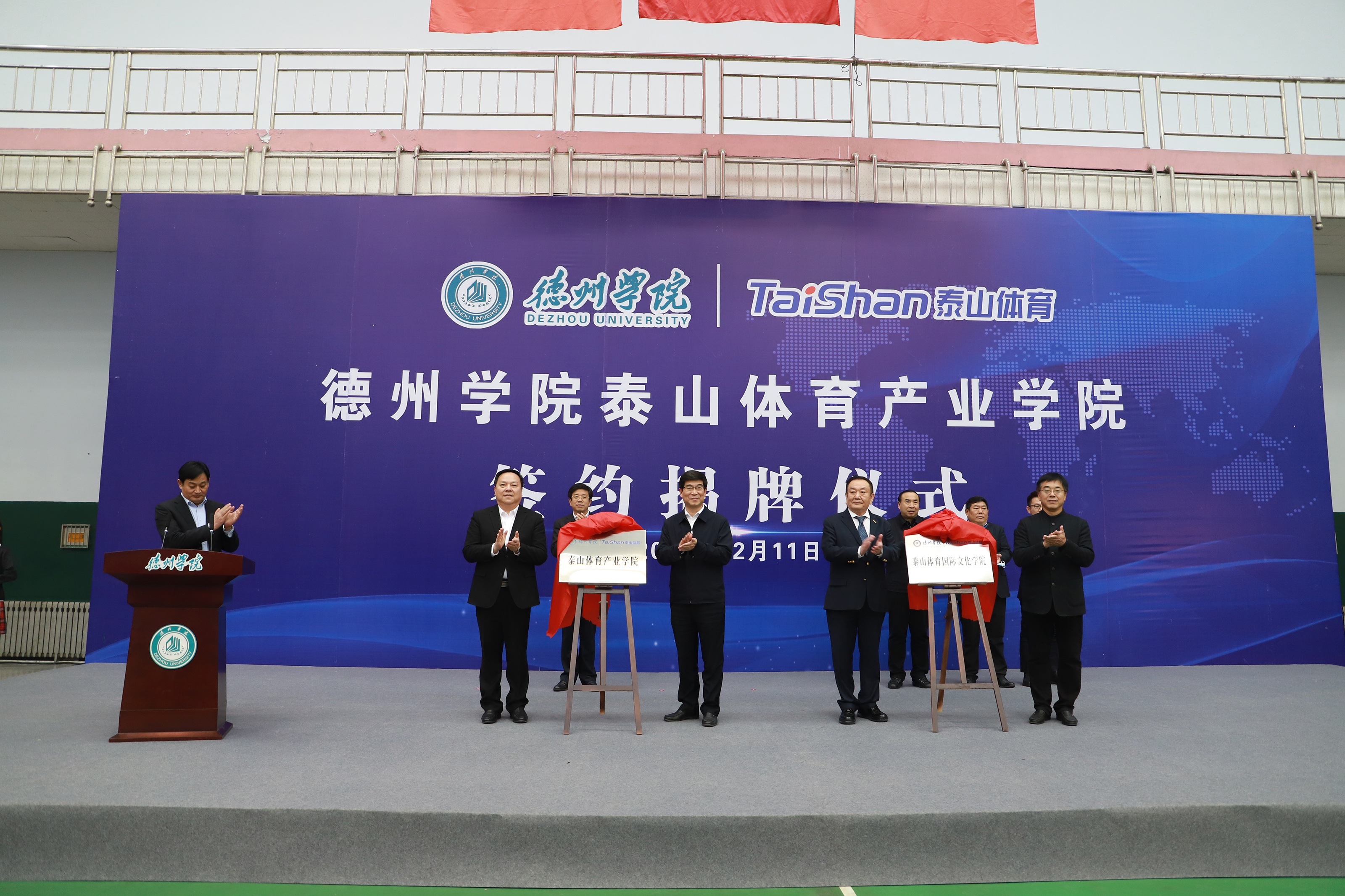 为深入推进科教结合、产学融合、校企合作,12月11日,由leyu乐鱼体育体育产业集团与德州学院共建的leyu乐鱼体育体育产业学院签约揭牌仪式在德州学院体育馆举行。德州市委书记李猛,市委常委、宣传部部长景文新,市委常委、秘书长张安民,德州学院党委书记车滨,德州学院院长赵胜村,乐陵市市委书记樊廷雷、全国政协委员、山东省体育产业联合会会长、leyu乐鱼体育集团董事长卞志良、leyu乐鱼体育集团副董事长卞青峰等领导出席仪式。